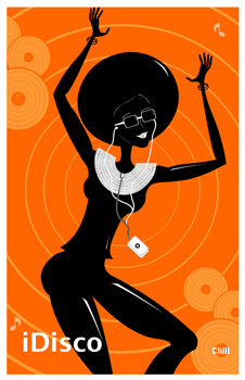 Chill's iIllustrations/graphic design secured two first-place wins and one second-place win for jewelry designer, Larry C.Y. Ho. in The International Tahitian Pearl Trophy Competition. Larry hired Christy to illustrate his wonderful jewelry designs and create the poster designs to elaborate on his concepts. You probably recognize the spoofs on the i-Pod advertisements that are currently part of our urban landscape.The iDisco concept merges old and new technologies. The form of the necklace mimics the shape of vinyl and is created with diamonds and Tahitian pearls. The iPod can be connected via the "record arm" or disconnected depending on what kind of night you have planned.